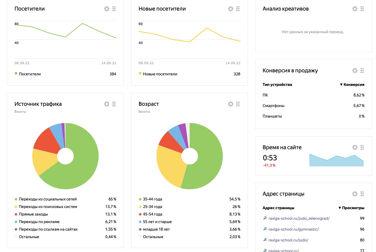 Благодаря детальной аналитике всех показателей сайта и их сегментации, мы достигаем высокого процента записей на наши занятия;